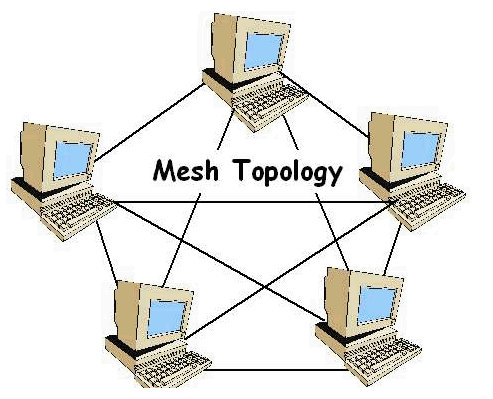 In a mesh topology, every device is connected to every device. While t his topology is the most challenging to establish, it has many advantages. Since it is a redundant network, if any part of the network is down, alternate routes are available.This topology is very expensive to implement and is only really used in large WANs where the network has to be up all the time.